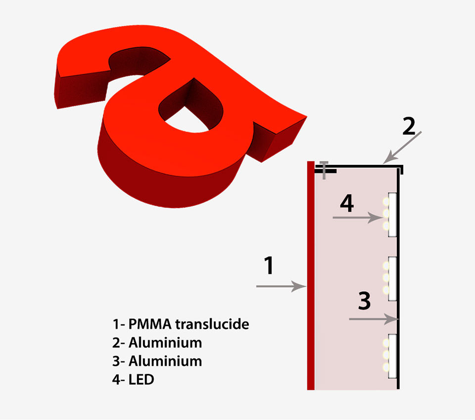 - face en PMMA translucide (diffusant).